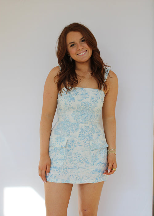 LOVELY POND PRINT MINI DRESS CASUAL MINI DRESS IN BLUE